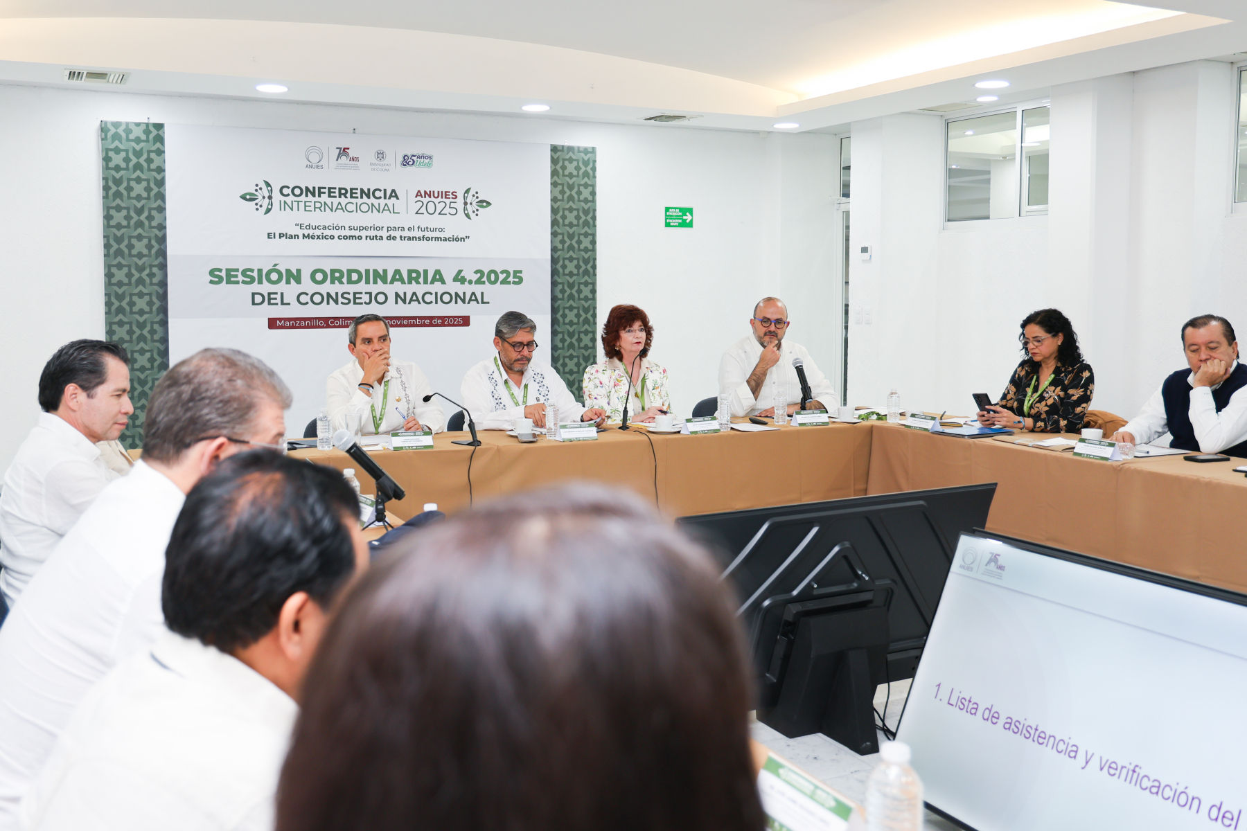 Con fundamento en los artículos Vigésimo Primero, Trigésimo Primero y Trigésimo Tercero, fracción VI, del Estatuto de la Asociación Nacional de Universidades e Instituciones de Educación Superior de la República Mexicana, A.C. (ANUIES), convoco a quienes integran el Consejo Nacional a la Sesión Ordinaria 4.2025 que se efectuará en modalidad presencial, en el Centro Universitario de Convenciones de la Universidad de Colima, ubicado en Carretera Manzanillo-Barra de Navidad, Km 20, Campus El Naranjo, C.P. 28860, Manzanillo, Colima, a las 16:00 horas del miércoles 12 de noviembre de 2025, con el siguiente
