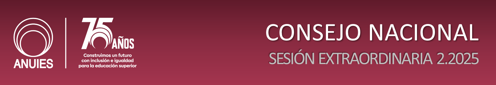 Con fundamento en los artículos Vigésimo Primero, Trigésimo Primero y Trigésimo Tercero, fracción VI, del Estatuto de la Asociación Nacional de Universidades e Instituciones de Educación Superior de la República Mexicana, A.C. (ANUIES), convoco a las y los titulares que integran el Consejo Nacional a la Sesión Extraordinaria 2.2025 que se efectuará en modalidad presencial, en la Sala de Juntas del Edificio B de la ANUIES, ubicado en Tenayuca 200, Col. Santa Cruz Atoyac, Alcaldía Benito Juárez, C.P. 03310, Ciudad de México, a las 11:30 horas del martes 21 de octubre de 2025, con el siguiente: