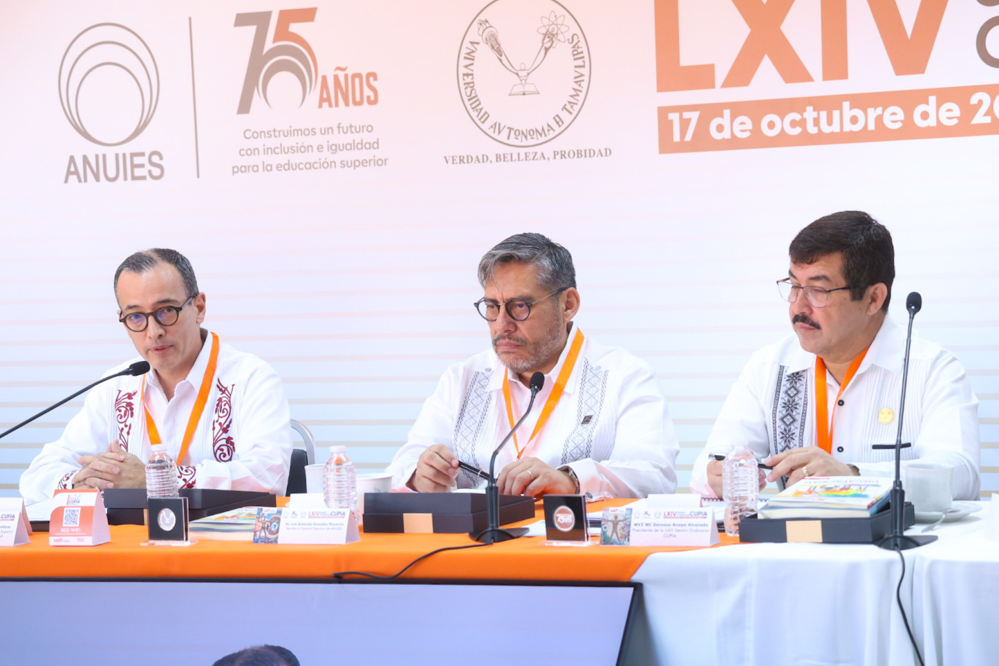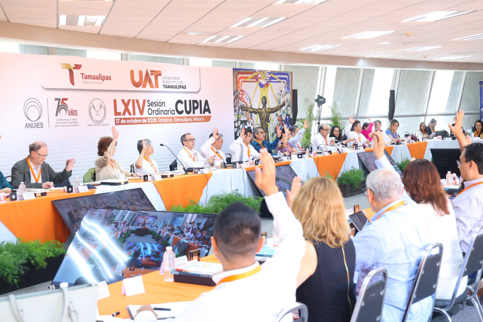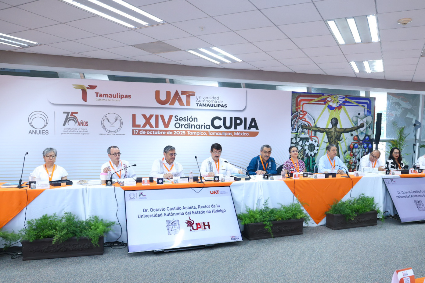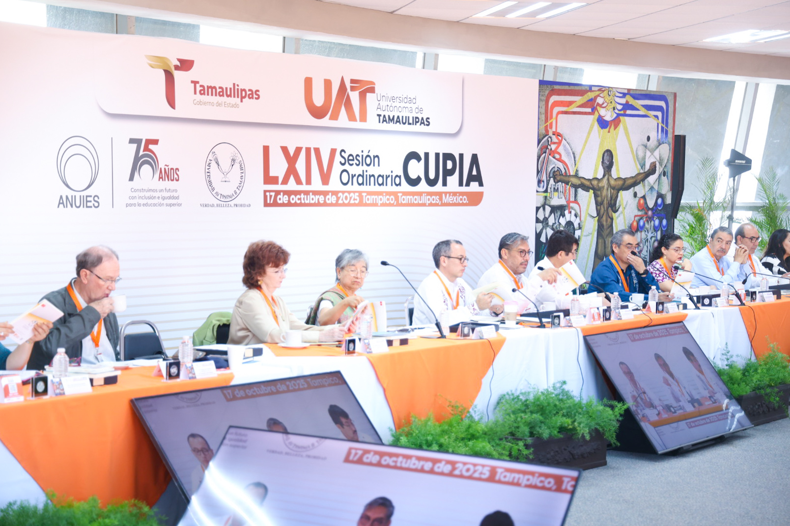 Con fundamento en los artículos Trigésimo, Trigésimo Primero y Trigésimo Tercero, fracción VI, del Estatuto de la Asociación Nacional de Universidades e Instituciones de Educación Superior de la República Mexicana, A.C. (ANUIES), convocamos a las y los titulares de las instituciones que integran el Consejo de Universidades Públicas e Instituciones Afines (CUPIA), a la LXIV Sesión Ordinaria que se efectuará en modalidad presencial, en la Universidad Autónoma de Tamaulipas, Centro Universitario Tampico Madero S/N, Universidad Poniente, C.P. 89336, Tampico, Tamaulipas, a las 10:00 horas del viernes 17 de octubre de 2025, con el siguiente::